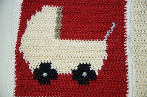 Granny Square - Motiv Puppenwagen häkeln ca. 15x15 cm - für eine Babydecke