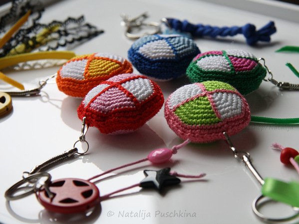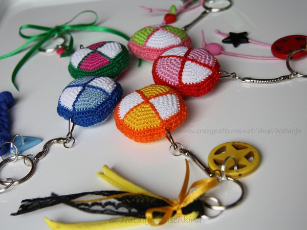 Verkauf der von Dir hergestellten Schlüsselanhängern ist unter folgenden Bedingungen erlaubt: Du darfst die Artikel, die Du mithilfe meiner Anleitung gefertigt hast, in beliebiger Stückzahl gewerblich verkaufen. Bitte den Hinweis: „Schlüsselanhänger angefertigt nach dem E-Book von Natalija Puschkina https://www.crazypatterns.net/de/store/Natalija“ dazusetzen.