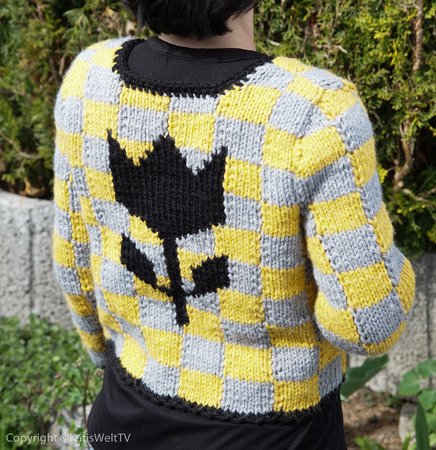 Am Ärmel und auf dem Rücken ist jeweils eine Tulpe eingearbeitet, auch hierfür bekommst du per PDF die Anleitung von uns.