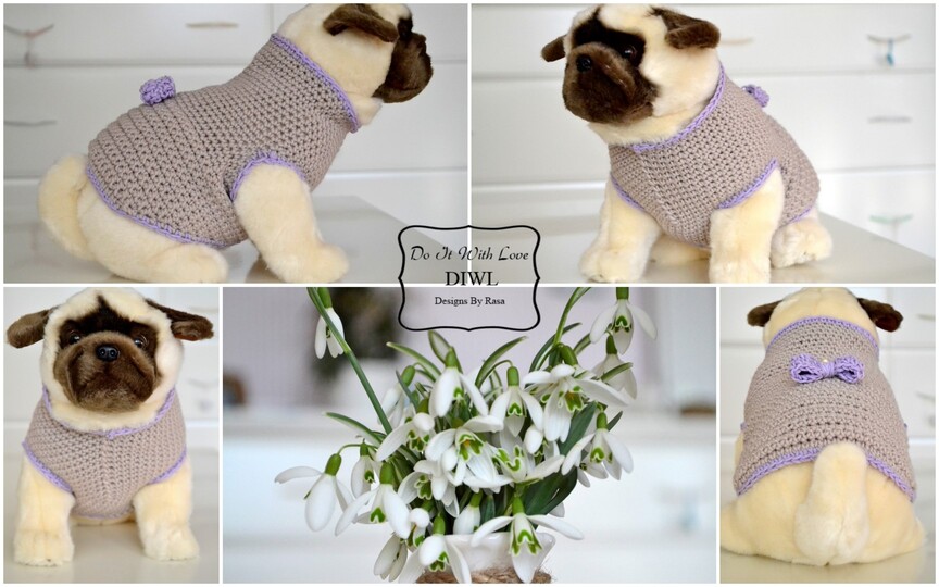 DIWL (e-book) Anleitung besteht aus professionell bebilderter Anleitung in *Deutscher Sprache* zum Häkeln von Hundepulli.