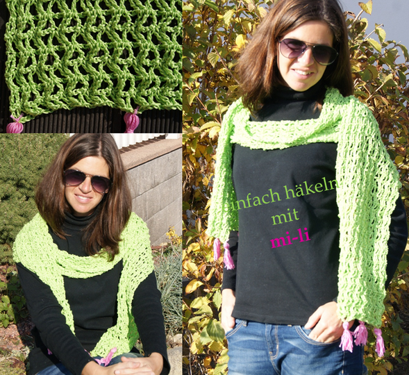 Dieser Übergangsschal peppt in fröhlichen Farben jedes Outfti auf und macht Spaß zu häkeln und zu tragen. Er ist ein angenehmer Begleiter für alle Jahreszeiten und passt enfach immer.
