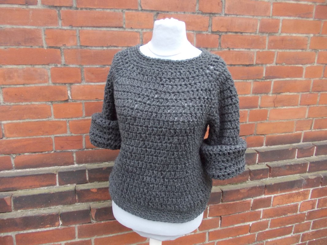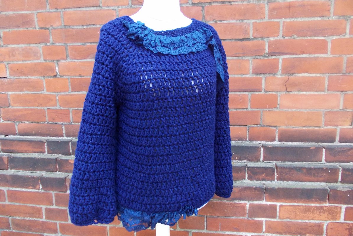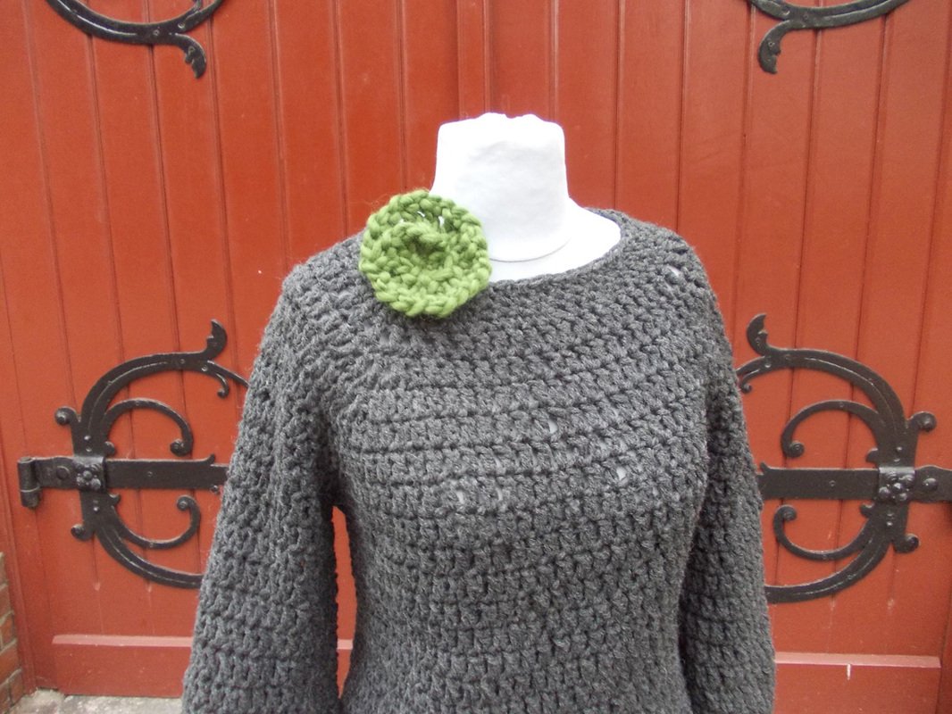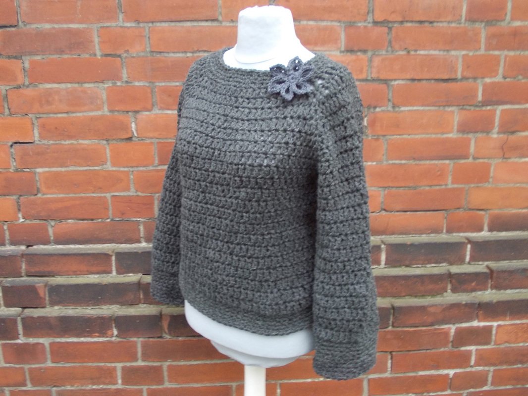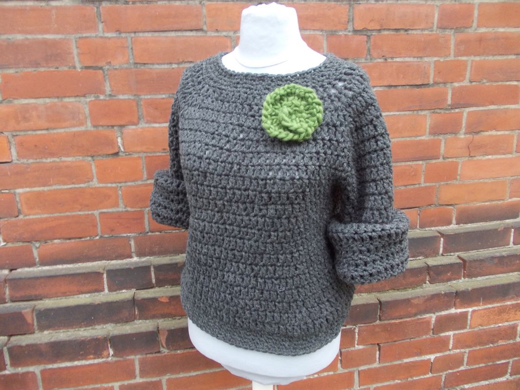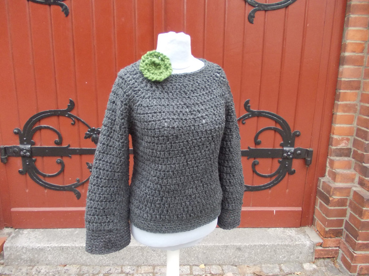 Da ich gehäkelte Pullover und Pulloverkleider schöner finde als gestrickte, biete ich hier meine Anleitung (pdf-Datei, 12 Seiten, 534 KB) dafür an. Es ist eine reich bebilderte Anleitung für ein schlichtes Modell, welches jedoch entsprechend verziert werden kann. Ob Häkelblumen, Stoffreste, Spitzenblenden, Rüschen, Knöpfe, der Fantasie zur Verzierung sind keine Grenzen gesetzt.