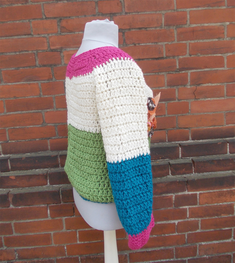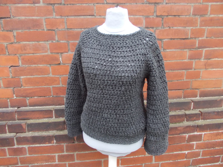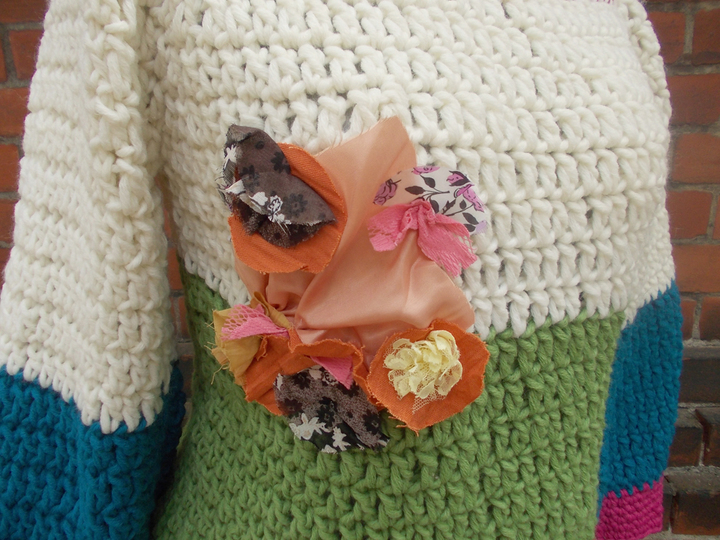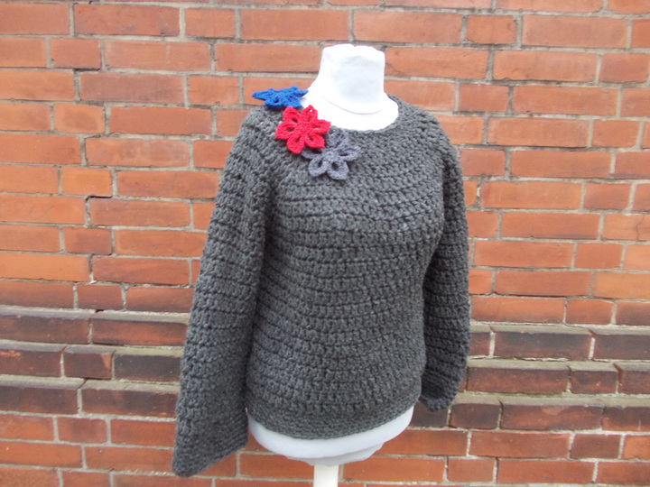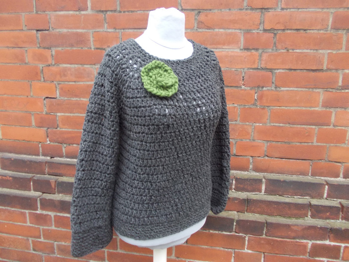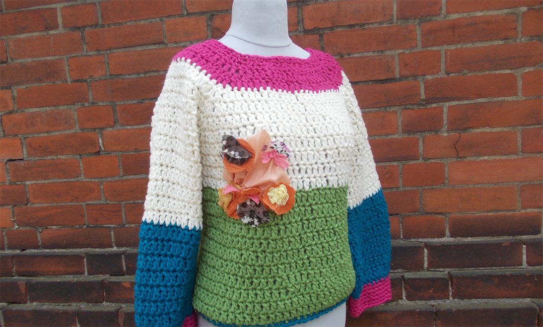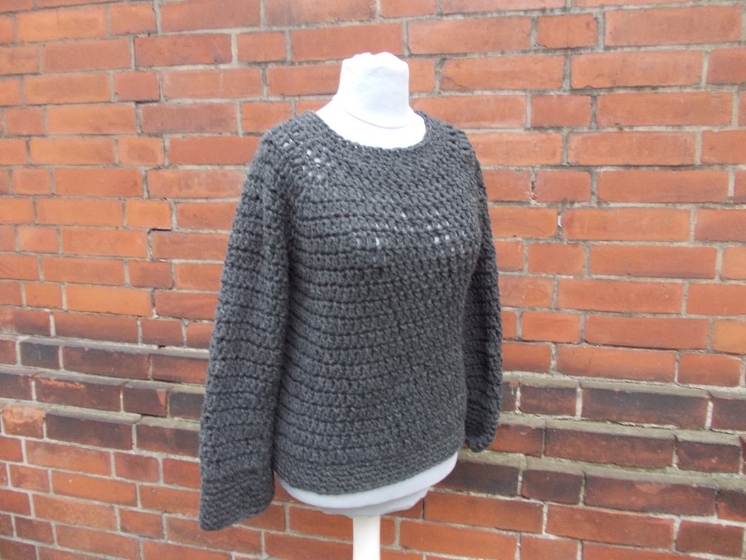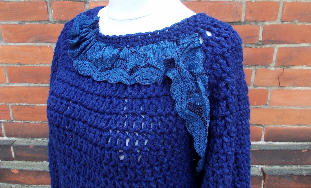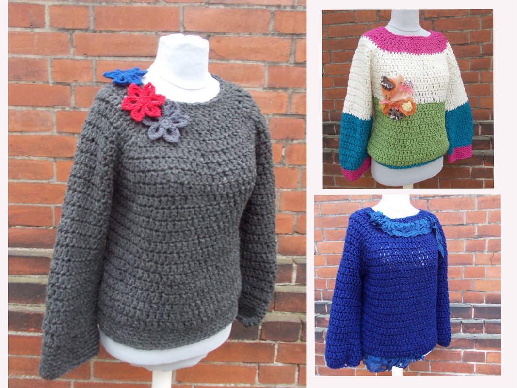 Da ich gehäkelte Pullover und Pulloverkleider schöner finde als gestrickte, biete ich hier meine Anleitung (pdf-Datei, 12 Seiten, 534 KB) dafür an. Es ist eine reich bebilderte Anleitung für ein schlichtes Modell, welches jedoch entsprechend verziert werden kann. Ob Häkelblumen, Stoffreste, Spitzenblenden, Rüschen, Knöpfe, der Fantasie zur Verzierung sind keine Grenzen gesetzt.