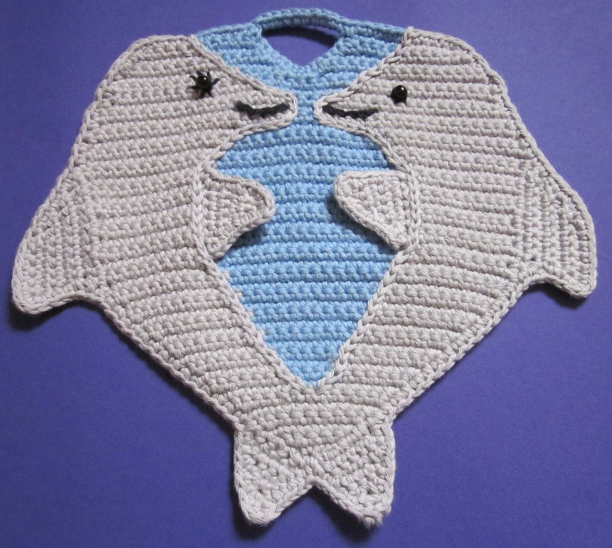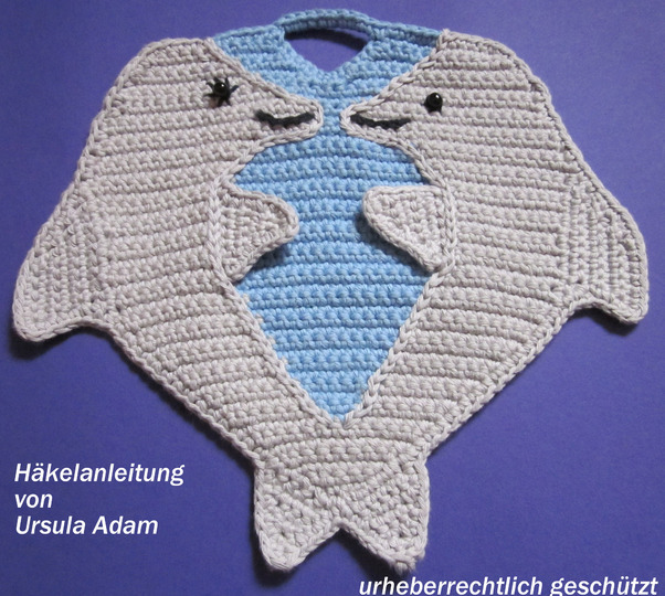 Ein verliebtes Paar Delfine als Topflappen oder Wanddekoration in der Küche.