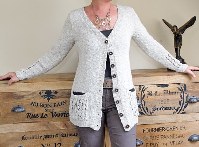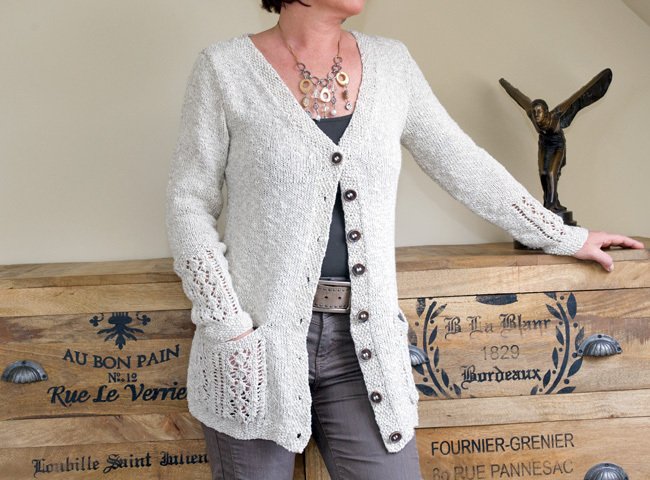 Eine tolle Jacke für Frühling und Sommer, wenn sie aus Baumwolle oder Leinen gestrickt wird (oder wie in diesem Fall aus beidem). Aber sie wirkt auch toll in Merino oder Kaschmir für kalte Wintertage.