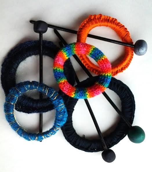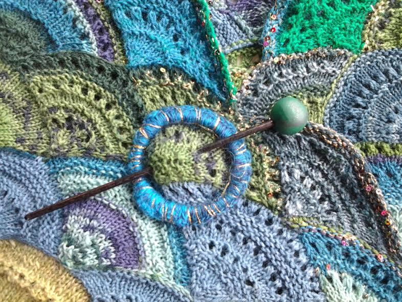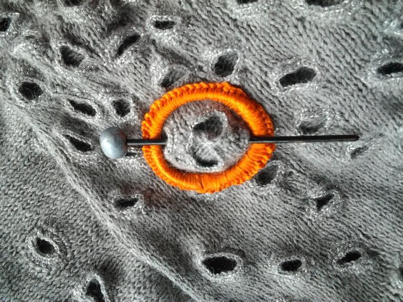 Zu jedem Tuch (oder Jacke) die passende Verschlussbrosche aus eigener Werkstatt.