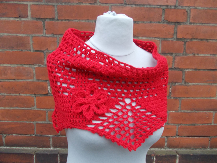 Wie alle meine Modelle kann auch dieses in vielen Varianten getragen werden, ob als Cape, als Rundschal, die Spitzen gedreht je nach Wunsch, als kleiner Poncho, mit Häkelblüten und ohne. Der Fantasie sind keine Grenzen gesetzt. Anleitungen für tolle Häkelblumen gibt es auch in meinem Shop (z. B. für die Sternblume wie auf zwei Bildern zu sehen).