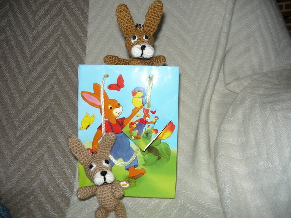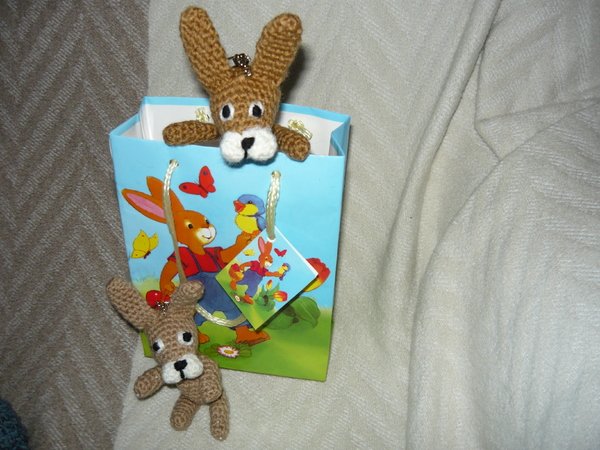 Der Hase ist auch sehr gut geeignet, um ihn an eine Geschenktüte anzuhängen oder in einen Osterkorb zu legen und schnell gemacht.