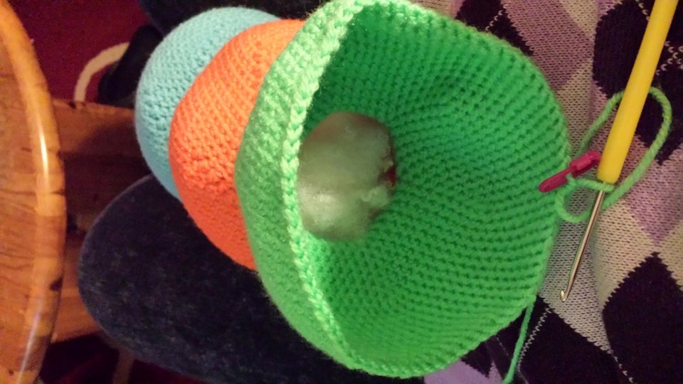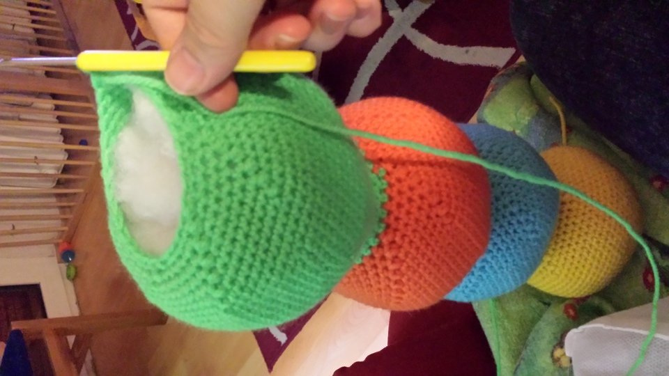 MoHier ist meine Anleitung für eine ca. 60 cm lange Raupe, ideal für Kinder zum Kuscheln. Sie ist in eins gehäkelt in Spiralrunden. Nur die Nase, Fühler und Mütze müssen angenäht werden. Auch für Anfänger ist die Anleitung geeignet, wenn dieser die Zu- und Abnahmen beherrscht. Maschen werden nur feste und Stäbchen für die Borte der Mütze gebraucht.