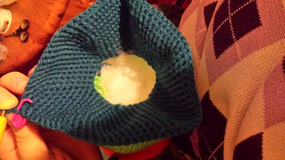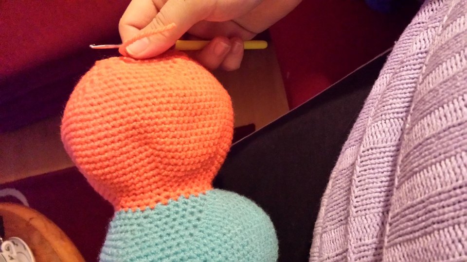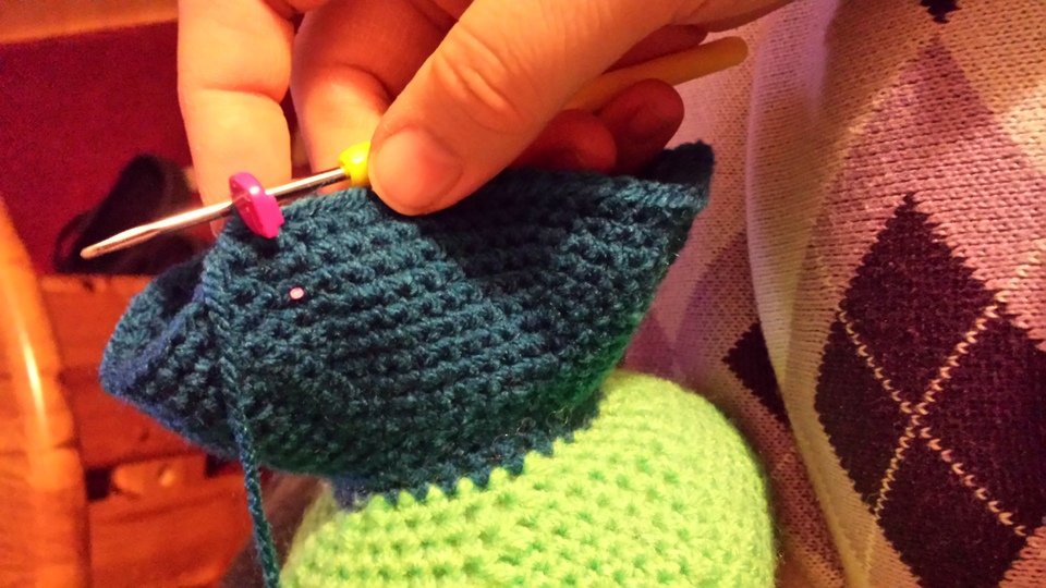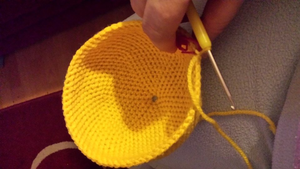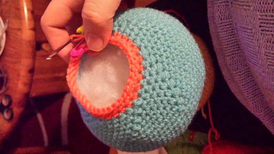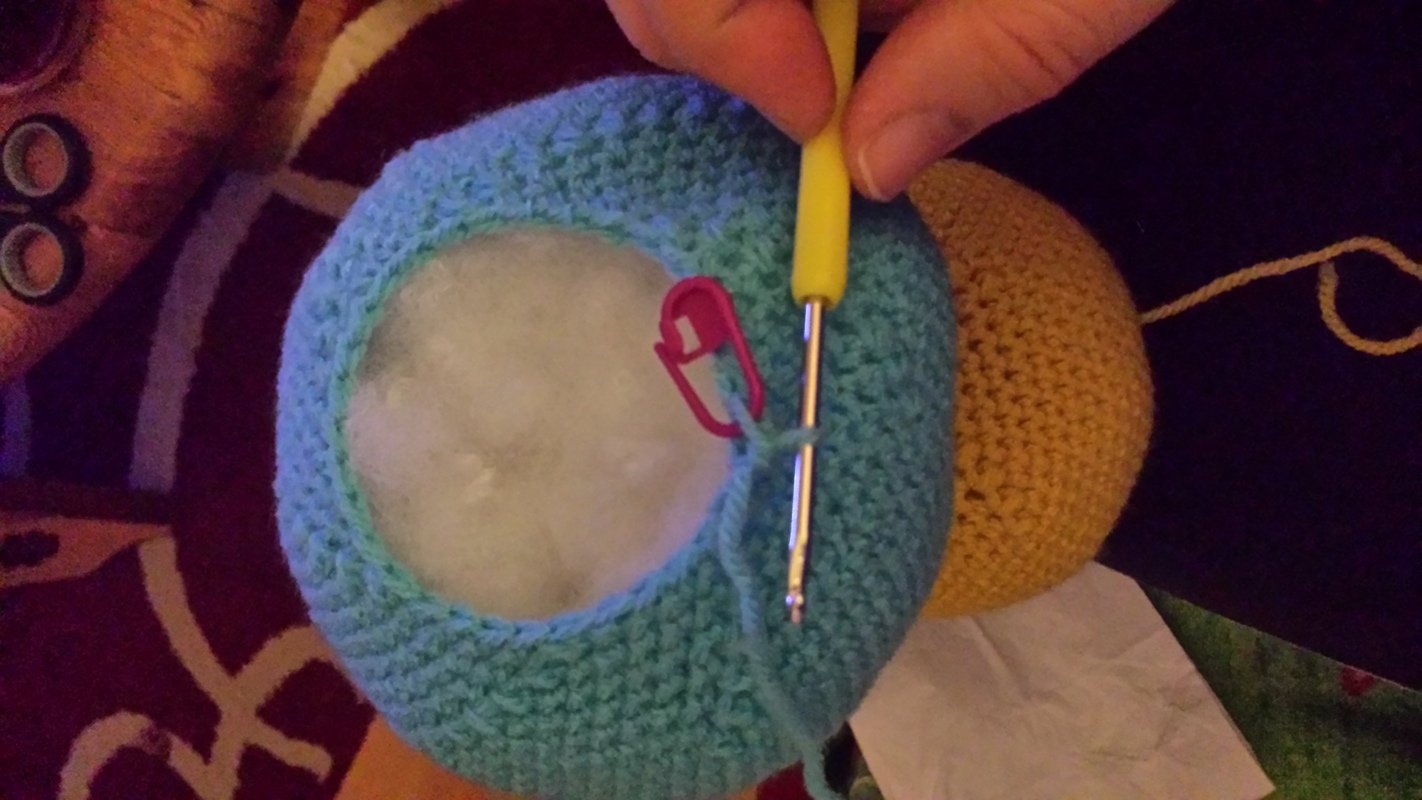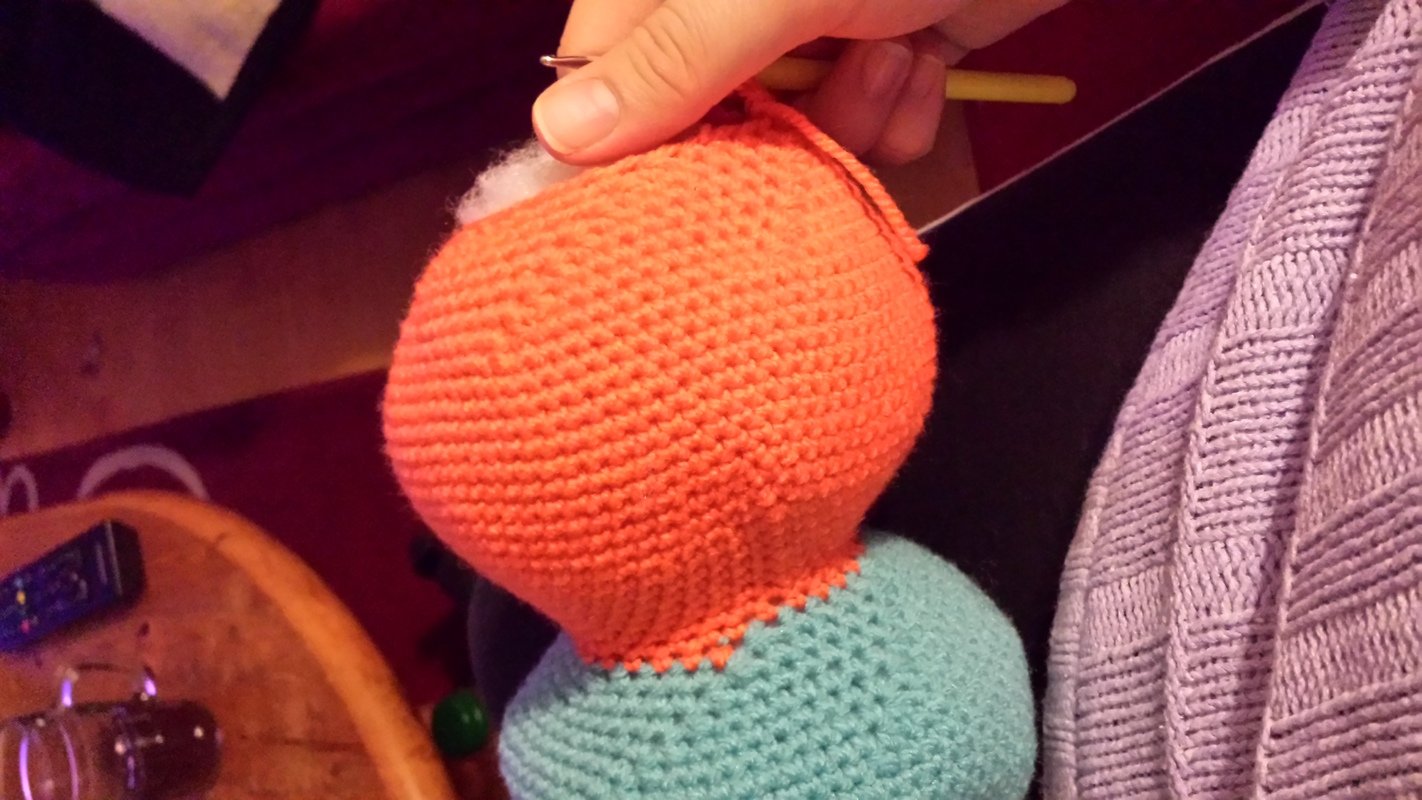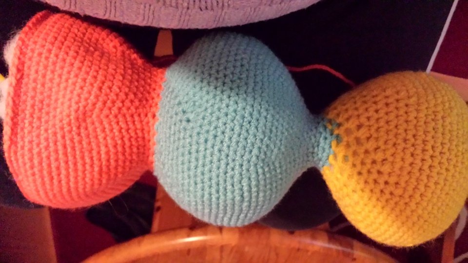 Als Material wird eine Häkelnadel 2,5, Wolle ca 200g insgesamt (5x je 40g), Maschenmarkierer und eine Sticknadel um alles dran zu nähen und Mund und Augen aufzusticken, Füllwatte und eine Schere.