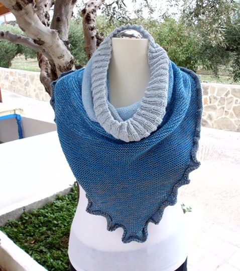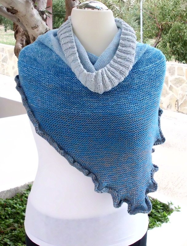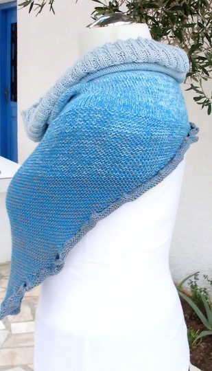 Trikolaro ist ein Dreieckskragen, gestrickt aus dem wundervollen Farbverlaufsgarn von Wollium.
