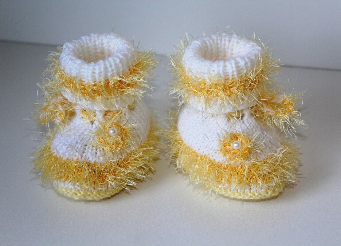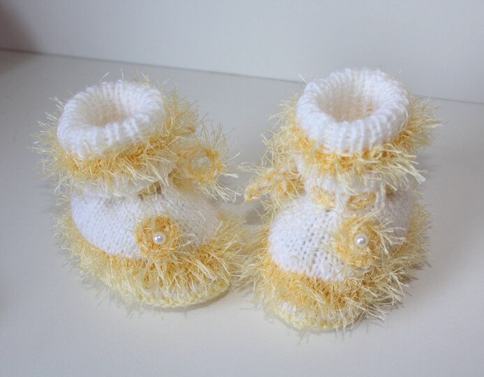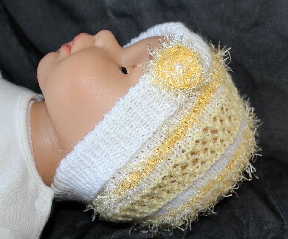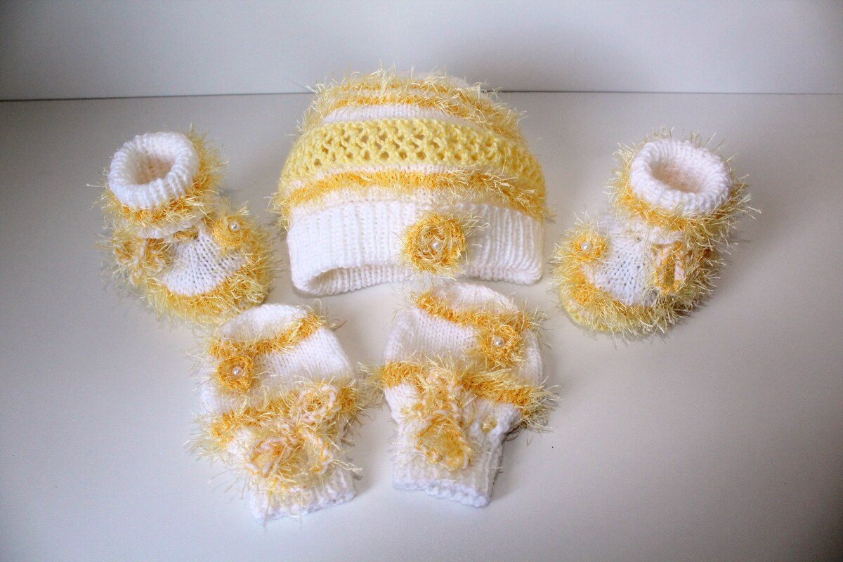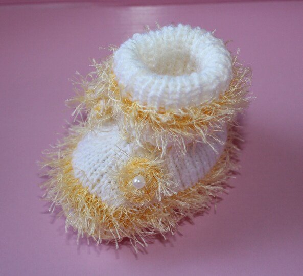 Mit diesem Baby-Set wird jedes Baby zu einer kleinen Prinzessin. Für das komplette Set benötigen Sie jeweils 1 Knäuel á 50 g in Weiss und Gelb von Schachenmayr "Baby bzw. Baby Smiles" mit einer Lauflänge von 185 m / 50 g sowie einen Knäuel Fransengarn / Effektgarn, z. B. Brazilia von Schachenmayr oder Jamaika Effekt-Strickgarn. Nur in weiss gestrickt ergibt sich sofort eine schöne Taufgarnitur.