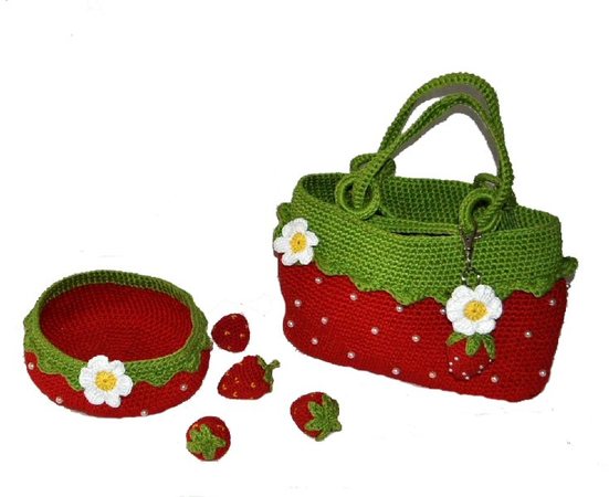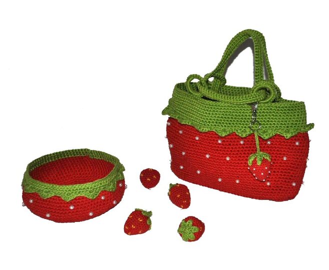 Jetzt wird es fruchtig, denn es kommt viel Erdbeere daher, als kleine Tasche, als Schale und als Anhänger für Schlüssel oder als Taschenbaumler.