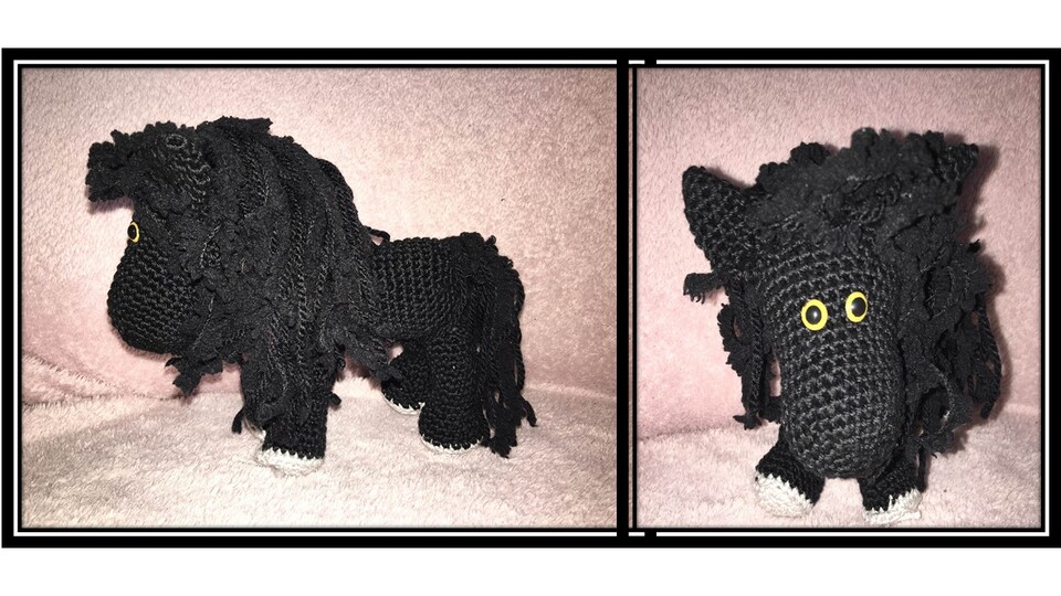 Das abgebildete Pferd wurde mit der Nadelstärke 2,5 / Schachenmayr Catania gehäkelt.