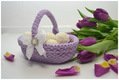 Das ovale Osterkörbchen Dreamy ist in einem romantisch verspielten Vintagelook in zartem Flieder gearbeitet. Ich habe es hier nur mit einer schlichten Schleife und einem silbernen Dekoknopf dekoriert. Du kannst es auch gern nach deinem Geschmack mit Häkelblümchen, Perlen, Knöpfen und Aufnähern verzieren.