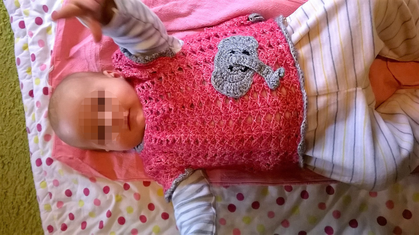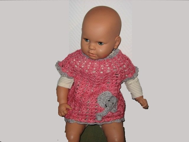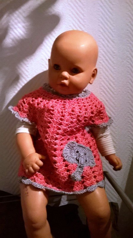 Bevor die Abschlusskante gehäkelt wird lässt, sich dieses Kleidchen / Longshirt beliebig verlängern und wächst so mit unserer Kleinen mit. Ich habe die Abschlusskante so gelassen und in beiden Farben abwechselnd noch ein paar Runden gehäkelt - und es passt ihr auch noch in Größe 74- 80.