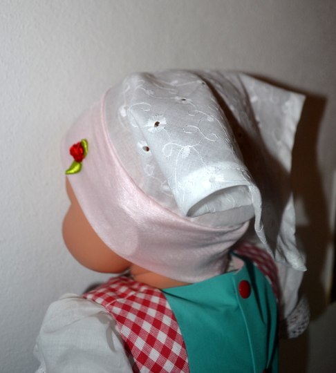 Das Kopftuch eignet sich auch als Sonnenschutz und ist vor allem für Mädchen hübsch und flott.