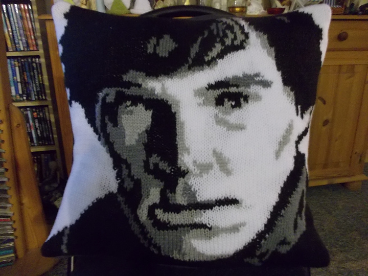 Das ist eine von mir entwickelte Strickschrift für einen Kissenbezug nach einem Bild von Sherlock Holmes / Benedikt Cumberbatch in der BBC Serie Sherlock.