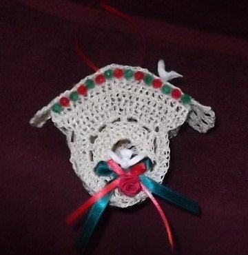 This listing is for a pdf crochet pattern to make this cute Bird House Ornament,it would look wonderful on a tree or used as a package tie. pictured, not the finished items.