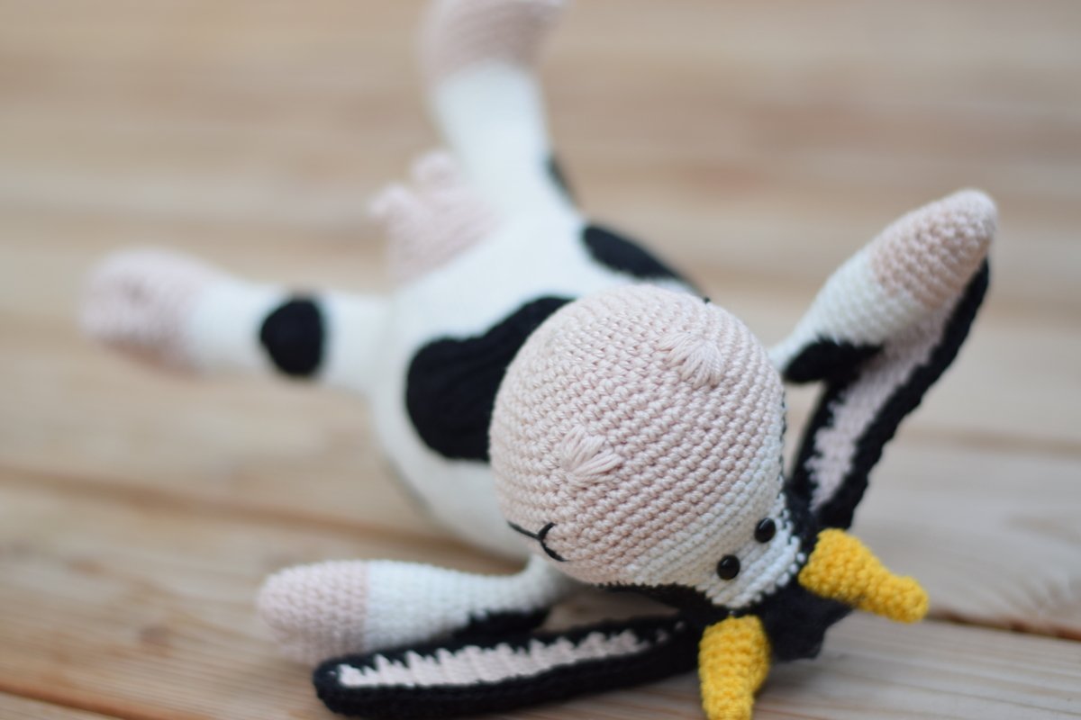 Die fertig gehäkelte Kuh eignet sich perfekt als Geschenk oder auch als Kuscheltier für Groß und Klein! Mit seiner Grösse von ca. 20 cm - sitzend (unter Verwendung derselben Wolle) dient er auch als einzigartige Dekoration und ist somit ein Blickfang für jeden Wohnraum!