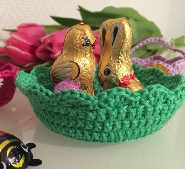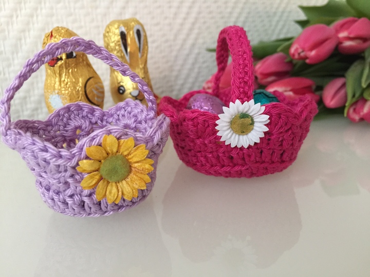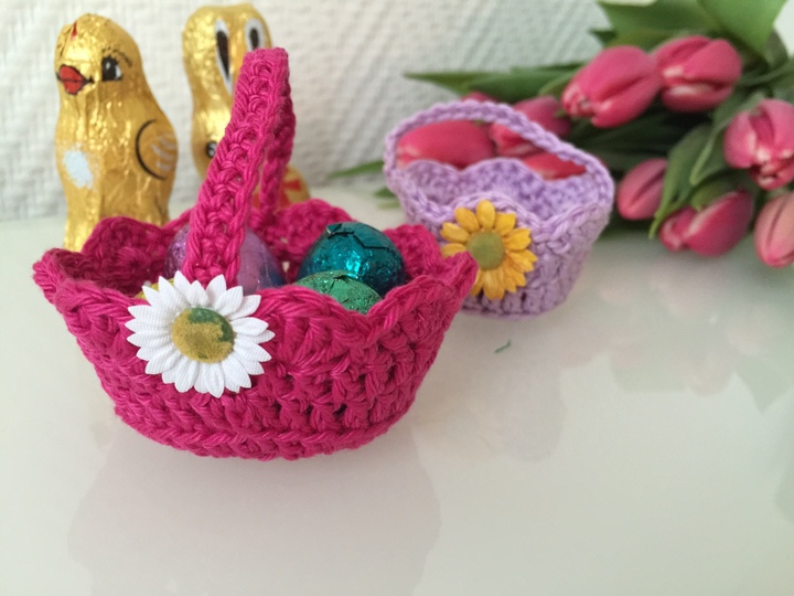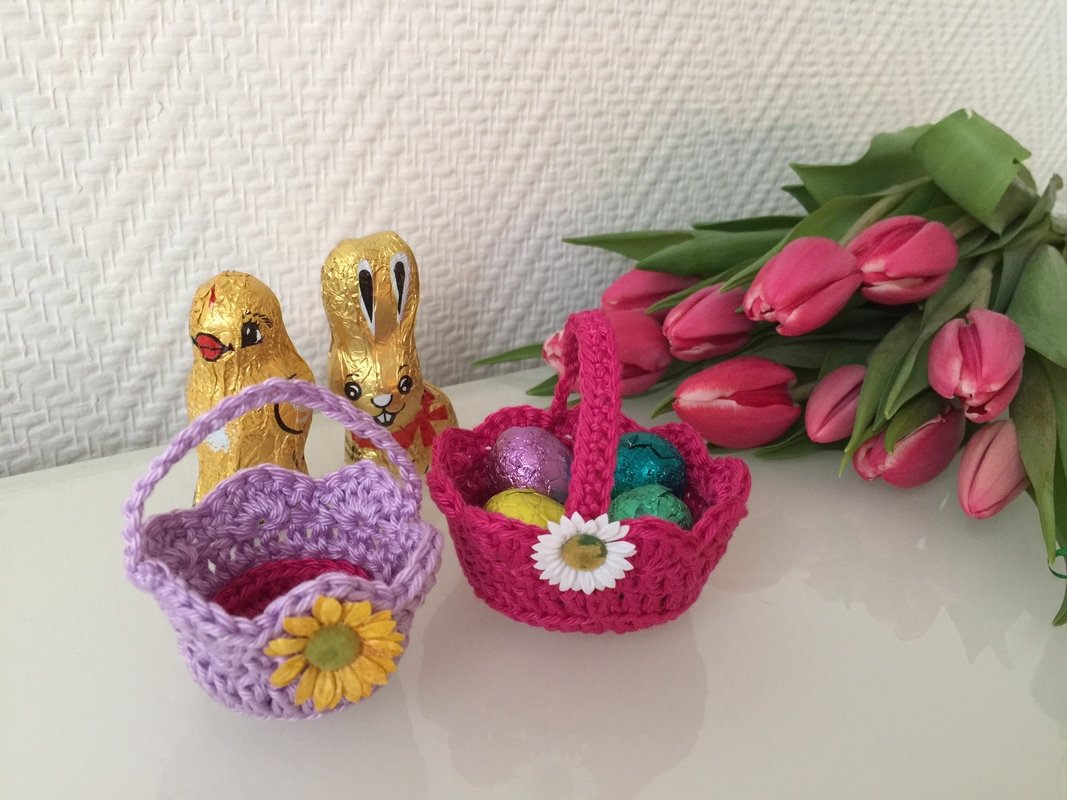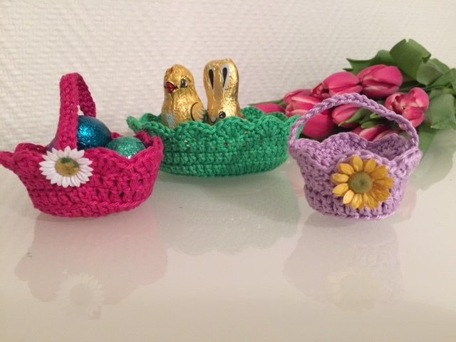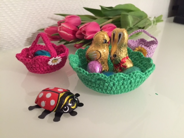 Diese süßen Oster-Körbchen habe ich für Euch in 3 verschiedenen Größen gehäkelt.