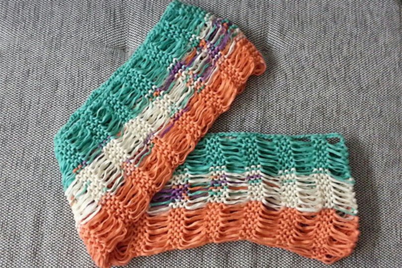 Gestrickt wird mit einem Bändchengarn aus Baumwolle und Nadel Nr. 8.
