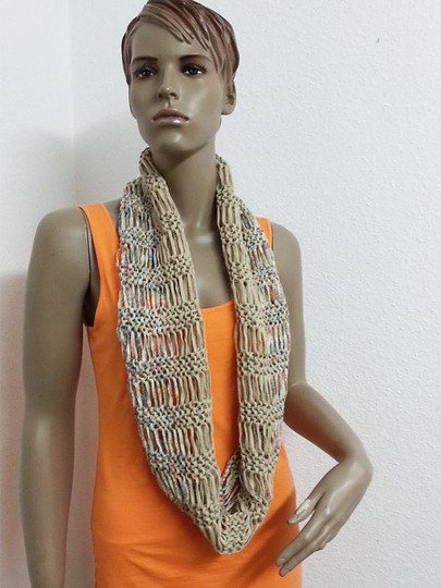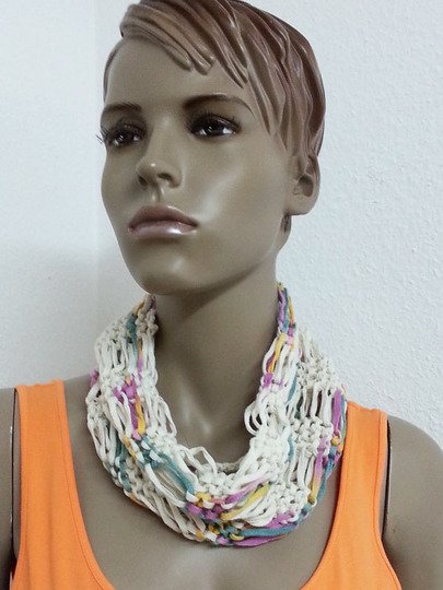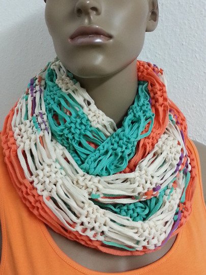 Mit 100g Bändchengarn ein Loop der doppelt um den Hals gelegt wird