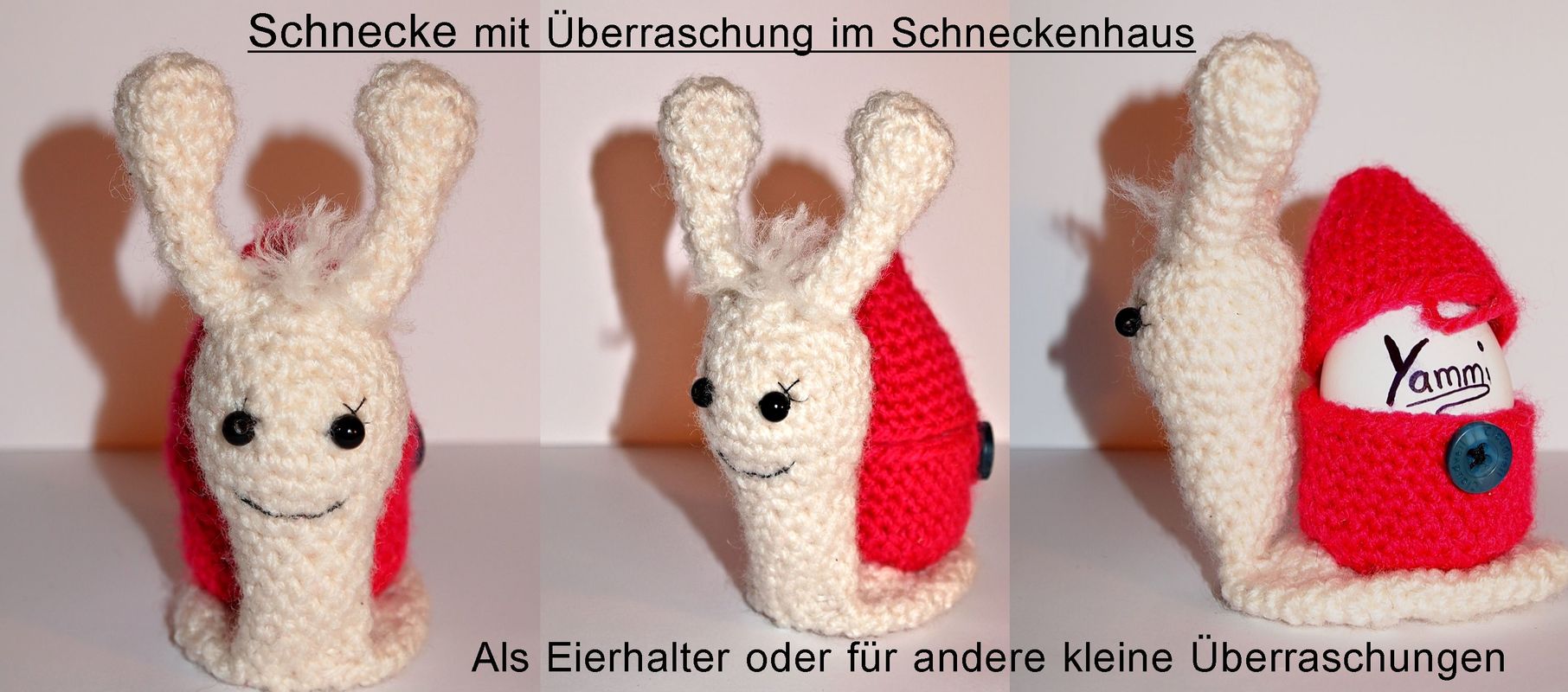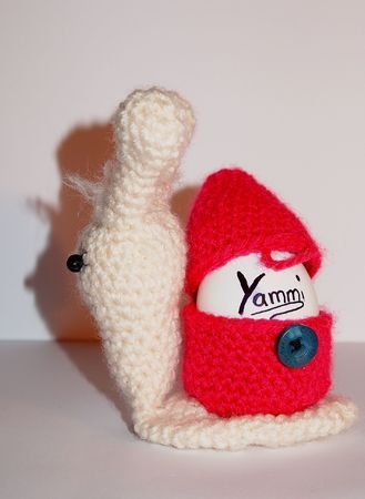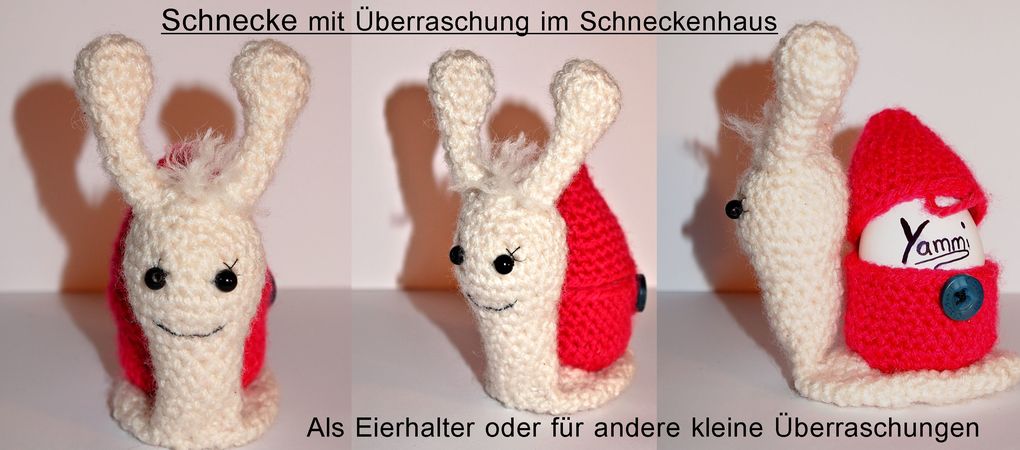 In ihrem Schneckenhaus passt ein hart gekochtes Hühnerei oder andere leckere Überraschungen hinein.