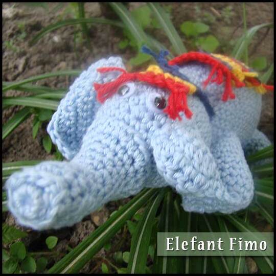 Den Elefanten Fimo können Sie auch als Häkelanfänger problemlos nacharbeiten. Fimo ist ca. 11 cm lang und 5 cm hoch.