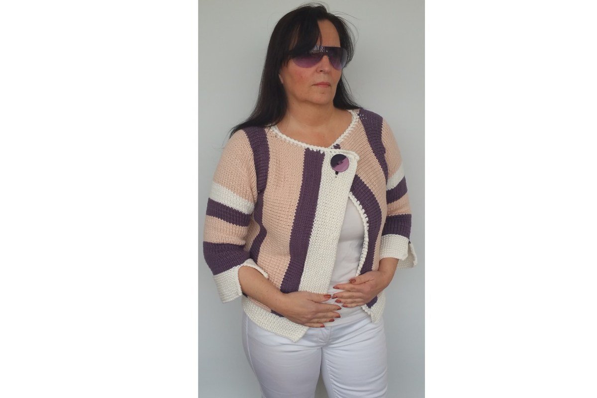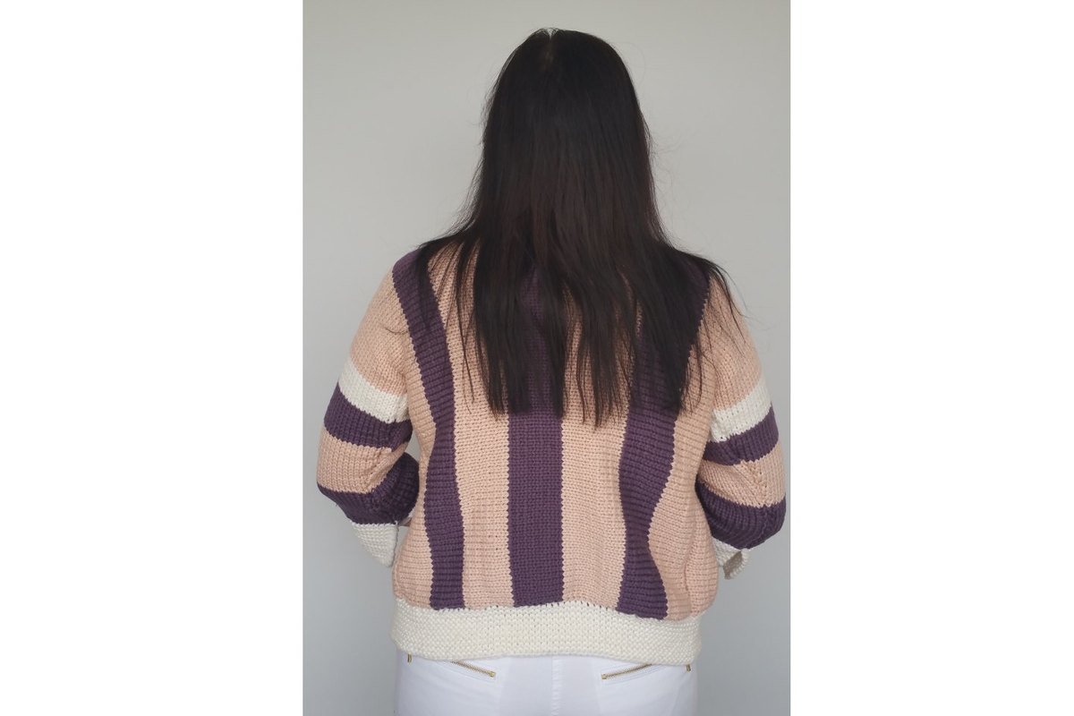 Eine Strickjacke mit grafischem Muster. Streifen sind in der kommenden Saison Trend ,dazu noch so tolle Farben ,die perfekt miteinander harmonieren.