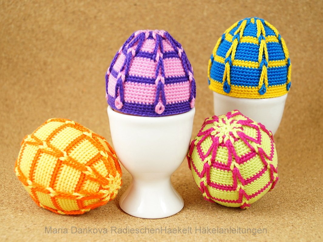 Bunte Eierwärmer und Osterei mit Schlaufen (Muster No. 3) - 2 in 1 Anleitung!