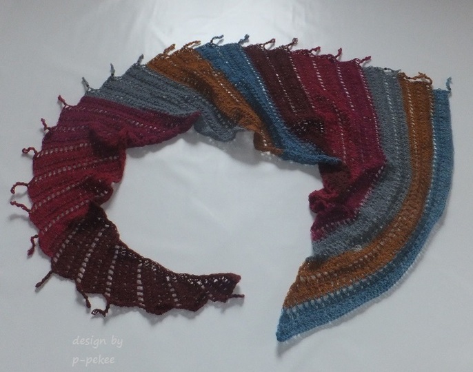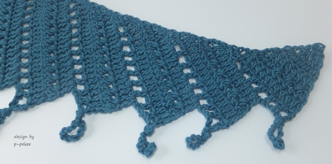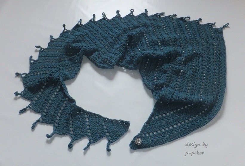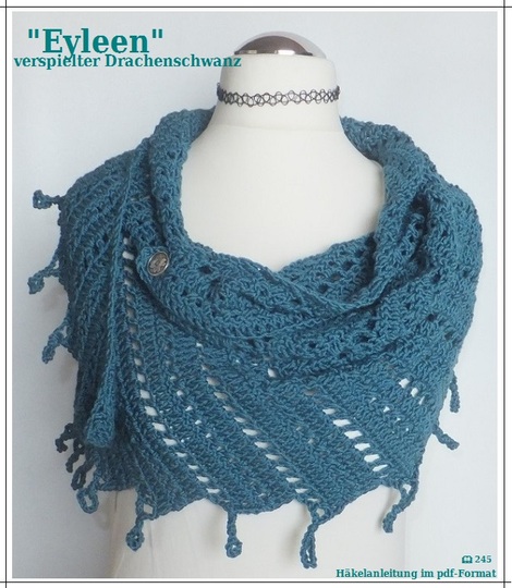 "Eyleen" ist ein gehäkelten Drachenschwanz mit schönem Muster. Die Fransen geben dem Schal einen verspielten Charakter.