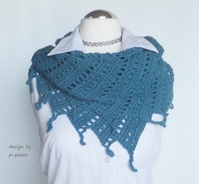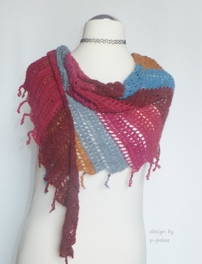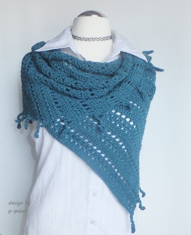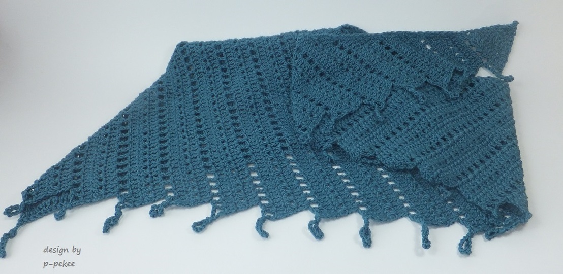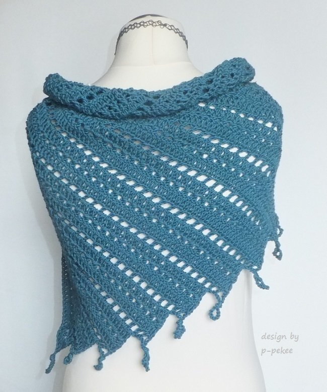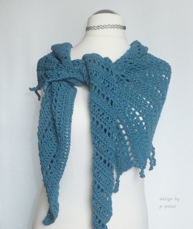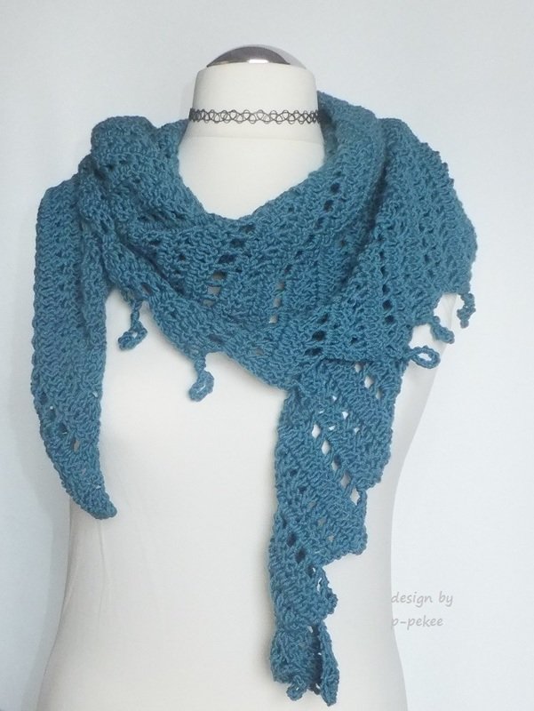 Das Tuch ist asymmetrisch und wird von der Seite her gehäkelt.