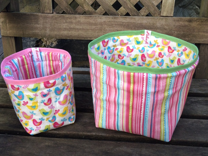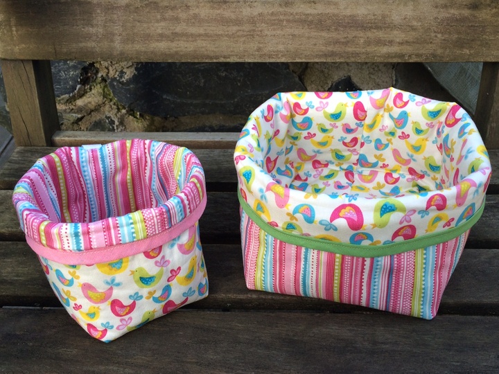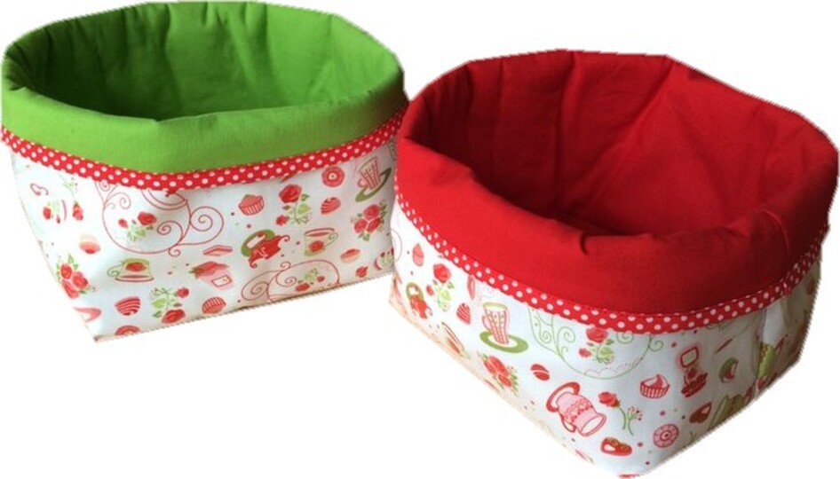 Mit dieser Anleitung könnt ihr aus jedem beliebigen Stoffrechteck (Maße für 2 unterschiedlich große Körbe sind in der Anleitung angegeben) ein tolles großes oder kleines Körbchen nähen und es als Brotkorb, Utensilo etc. verwenden. Die Anleitung kommt daher ganz ohne Schnittmuster aus !