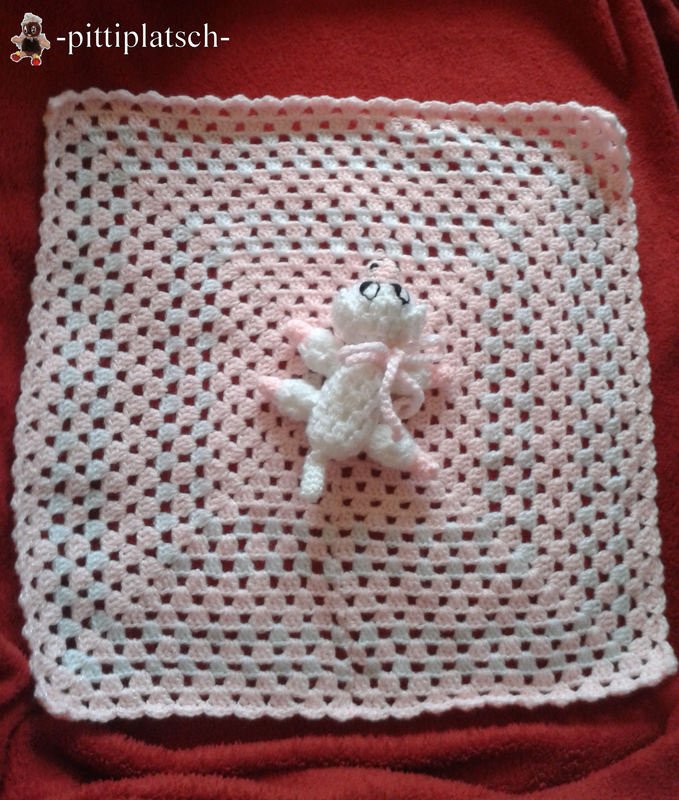 Kann also beliebig auf dem Tuch, das im Grannystyle gehäkelt wurde,