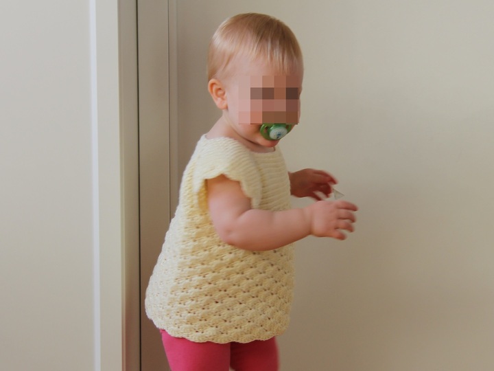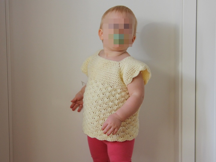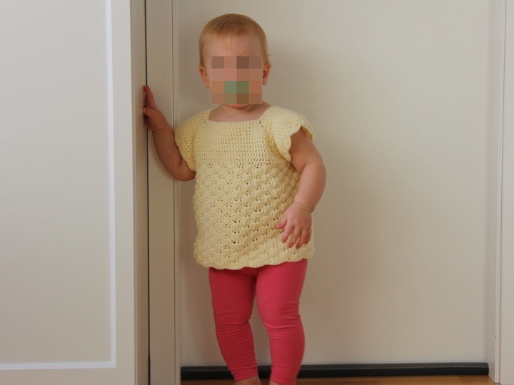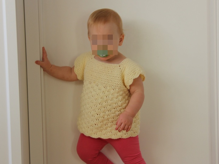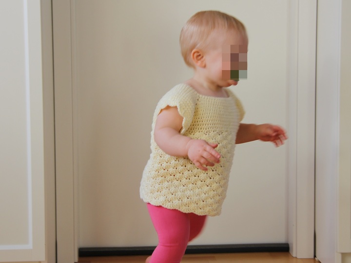 Wenn das in der Anleitung angegebene Garn benutzt wird, entsteht eine Tunika in der Größe 86/92/98. Wie Sie mit anderen Garnen und/oder für andere Größen häkeln, ist erklärt! Sie folgen dem Prinzip der Anleitung Schritt-für-Schritt, eben nur mit einer anderen Maschenanzahl und Rundenmenge.