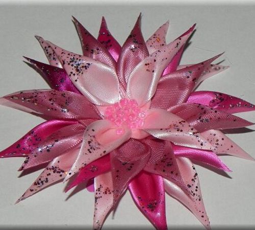 Kanzashi ist eine alte japanische Stoff-Falttechnik, mit der sich sehr wunderschöne Mode-Accessoires herstellen lassen.Haarklammer, Haargummis, Haarspangen, Haarreife, Broschen usw. können mit dieser Blume hergestellt werden.