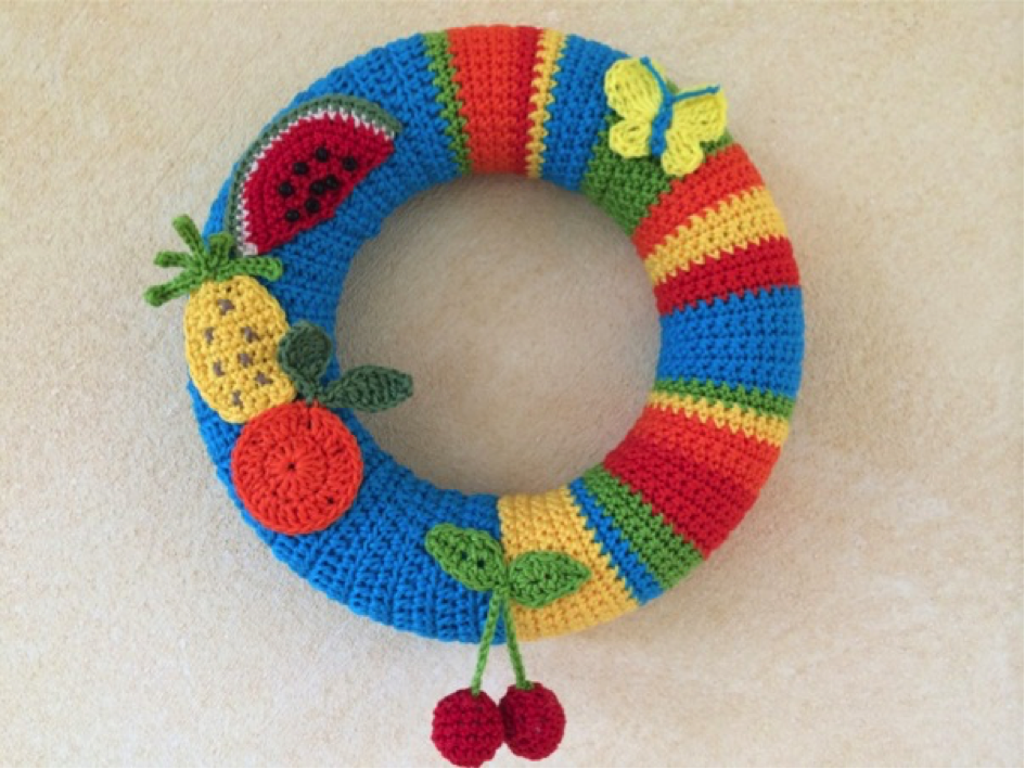 Materialbedarf: Baumwolle in den verschiedenen Farben, Styroporkranz 22 cm, Stecknadeln