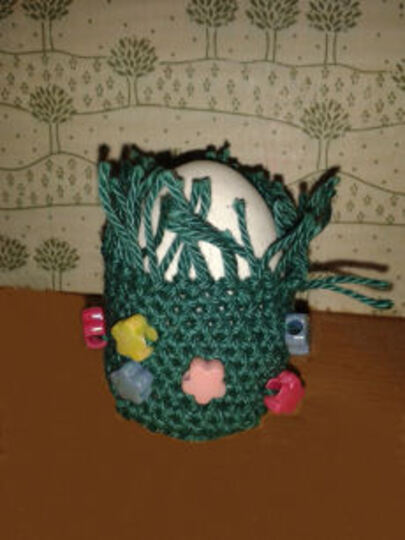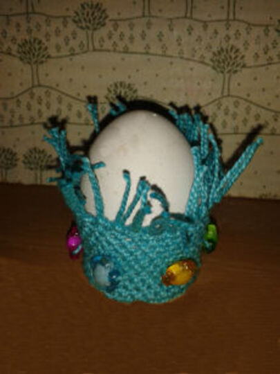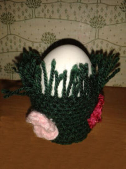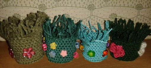 Die Eierbecher haben einen Durchmesser von knapp 4 cm, sie sind 4 cm hoch und mit Grasfransen etwa 6 – 7 cm hoch