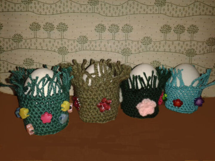 Durch verschiedenfarbene Grüntöne und Verzierungen werden diese kleinen Eierbecher
