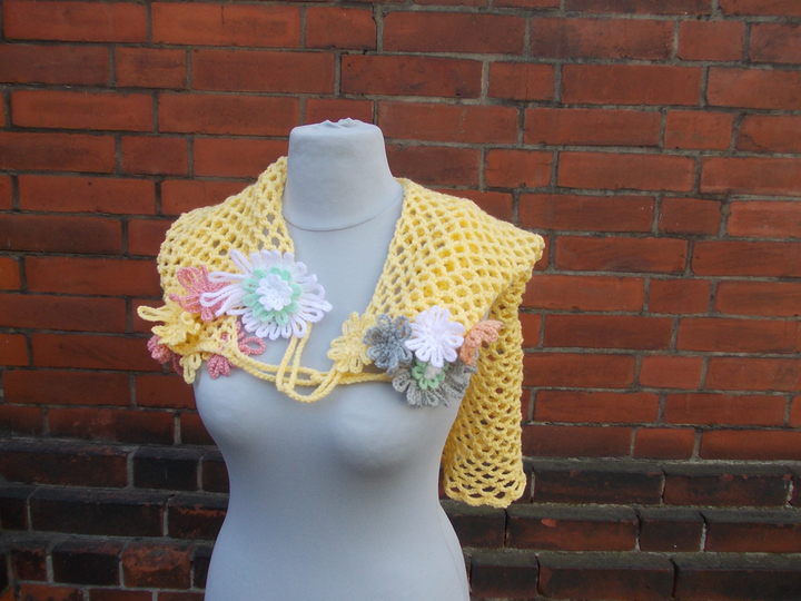 Wir häkeln Luftmaschen, Kettmaschen, feste Maschen und Stäbchen. Die Anleitung enthält auch einige Bilder aus der Galerie als Tragebeispiele. Der Fantasie und dem Geschick der Trägerin sind keine Grenzen gesetzt.