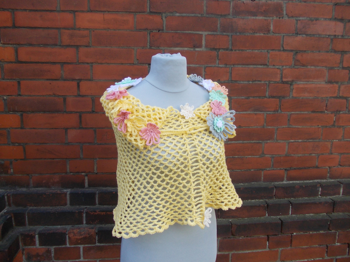 Wer sich nicht traut, diesen Hauch von einem Kleid zu tragen, nun, es gibt auch die Möglichkeit des Tragens als Poncho, als Rundschal oder wie auch immer. Der Clou an diesem Modell ist die auffällige und echt raffiniert, jedoch einfach zu fertigende "Seitenhäkelei", zudem die wunderschönen und soooooooooooo einfach zu häkelnden Häkelblüten.