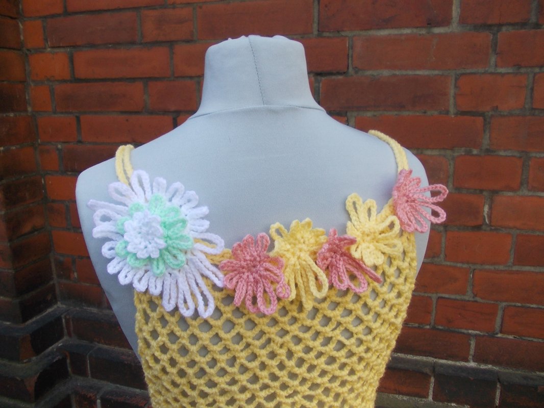 Unglaublich viele Tragevarianten. Es ist auch möglich, das Kleid mit anderen Häkelblumen zu verzieren, Anleitungen für schöne Blumen gibt es in meinem Shop. Wer dies nicht mag, nun bitte, auch ohne Verzierung ist das Kleid ein Hingucker.