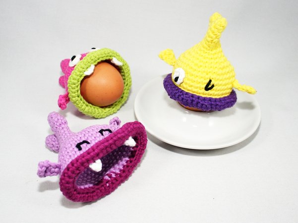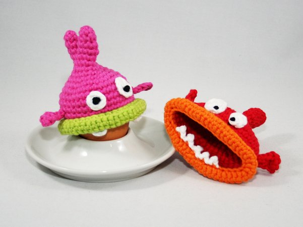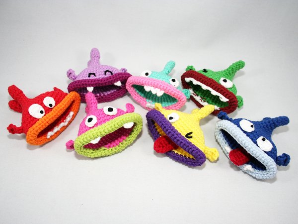 Tob' dich aus bei der Wahl der Augen (gehäkelt und/oder aufgestickt) und der Zähne (rund oder spitz). Du kannst sogar eine Zunge hinzufügen. All das wird in dieser Anleitung erklärt.
