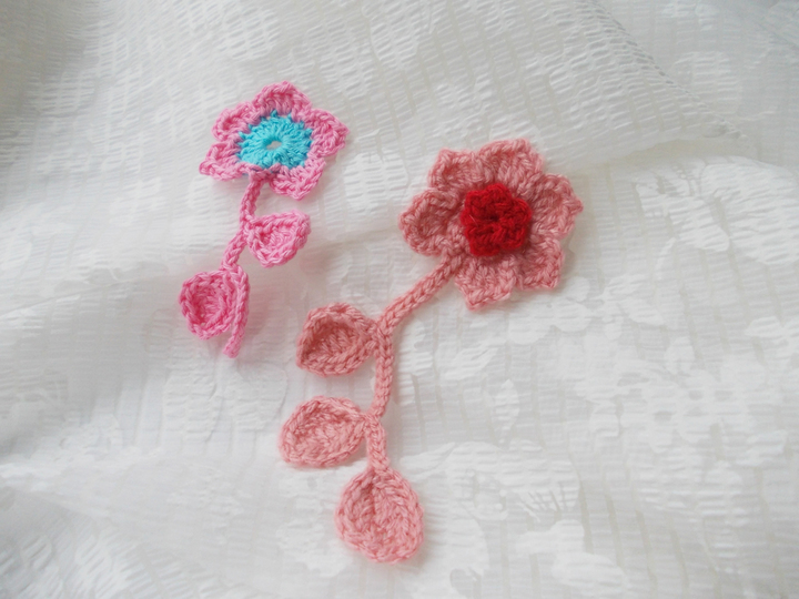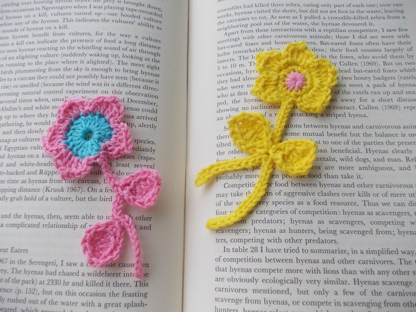 Da Häkelblumen eine große Leidenschaft von mir sind, habe ich Blüten mit Stielen und Blättern entworfen, welche als Lesezeichen, Aufnäher, Taschenbaumler, Schlüsselanhänger, Verzieren von Kleidung, Kissenbezügen, Babydecken, Mützen, Beanies, Schals, als Geschenk und je nach Fantasie verwendet werden können.