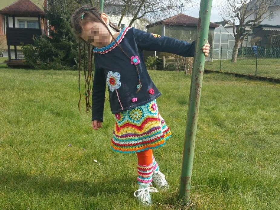 Mit dieser Anleitung kannst du einen hippen Kinderrock häkeln der lange mitwächst.