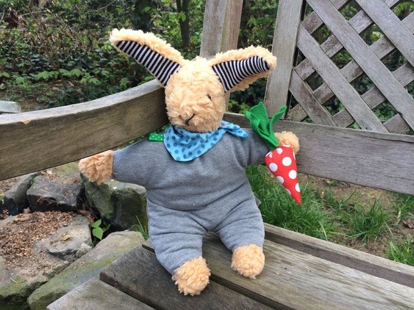 Mit dieser einfachen Nähanleitung ist aus ein paar Stoffstücken ganz schnell ein kleiner Kuschelhase gezaubert.