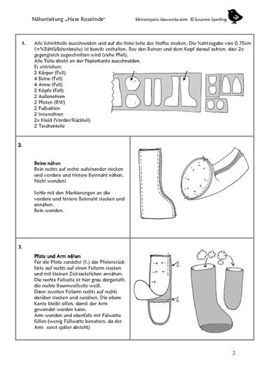 Einfach und übersichtlich ist erklärt, wie der Hase gefertigt wird. Detaillierte Zeichnungen zeigen jeden Arbeitsschritt und machen alles nachvollziehbar.