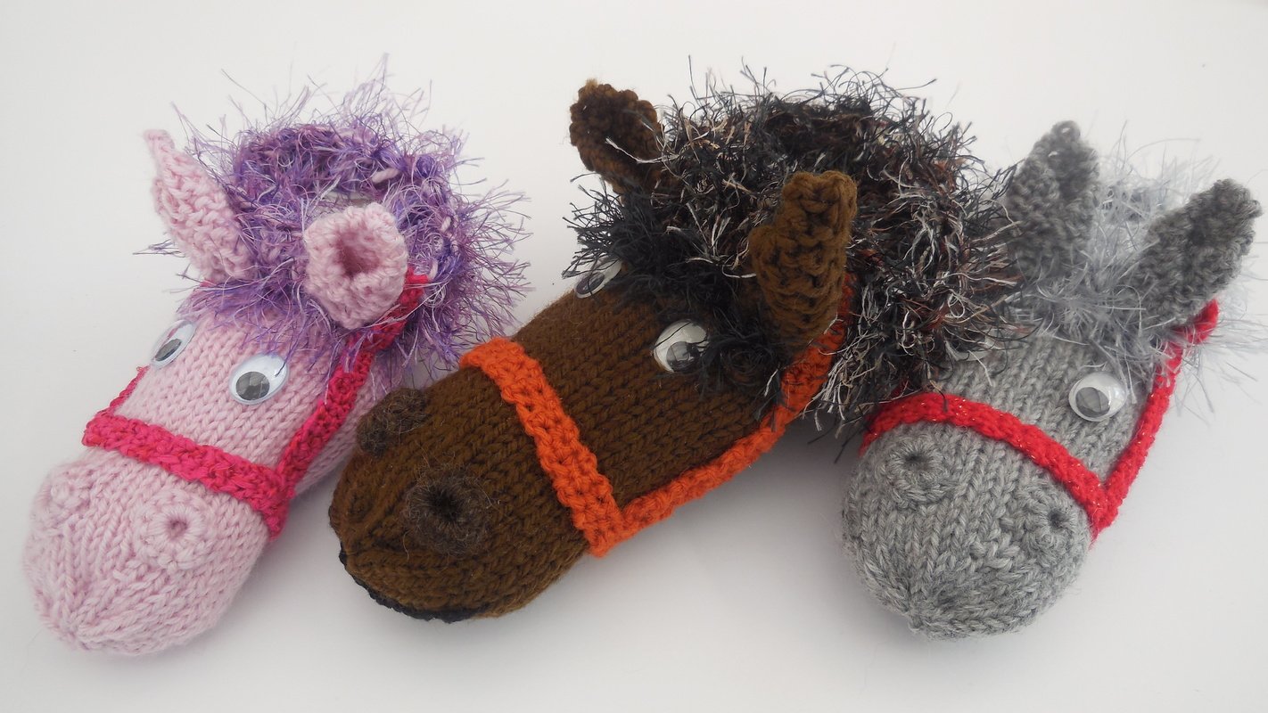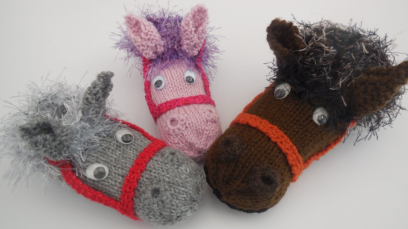 Für ein Paar benötigen sie ca. 30 g in der Hauptfarbe und Wollreste für Bündchen (Fransengarn) und Halfter.