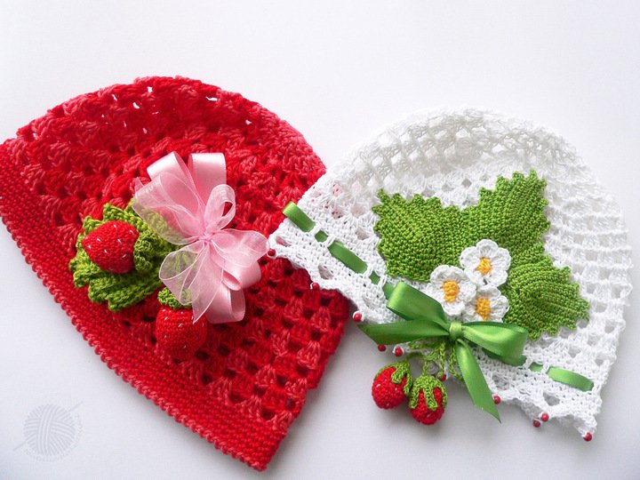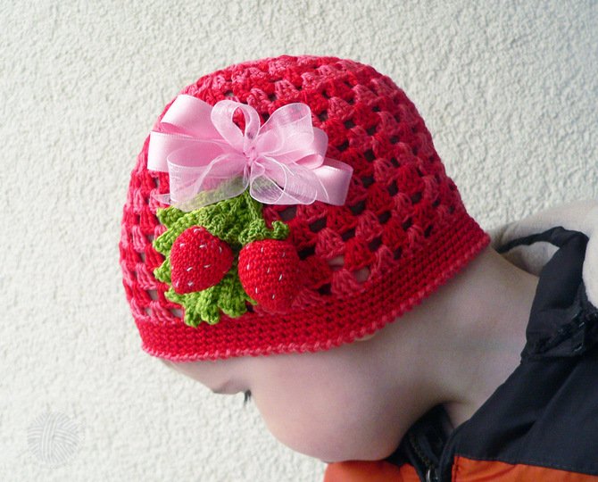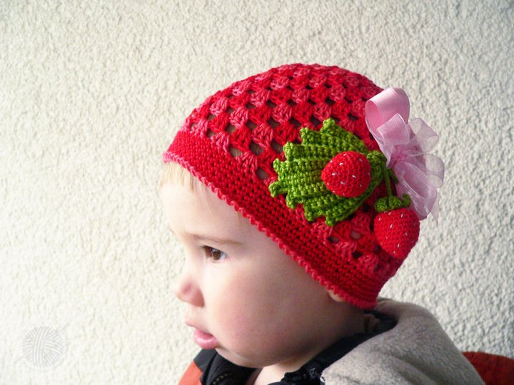 Diese PDF-Häkelanleitung besteht aus bebilderter Anleitung zum Häkeln von Kindermützen in 2 Varianten mit den Erdbeeren für den Sommer, Frühling oder Herbst.